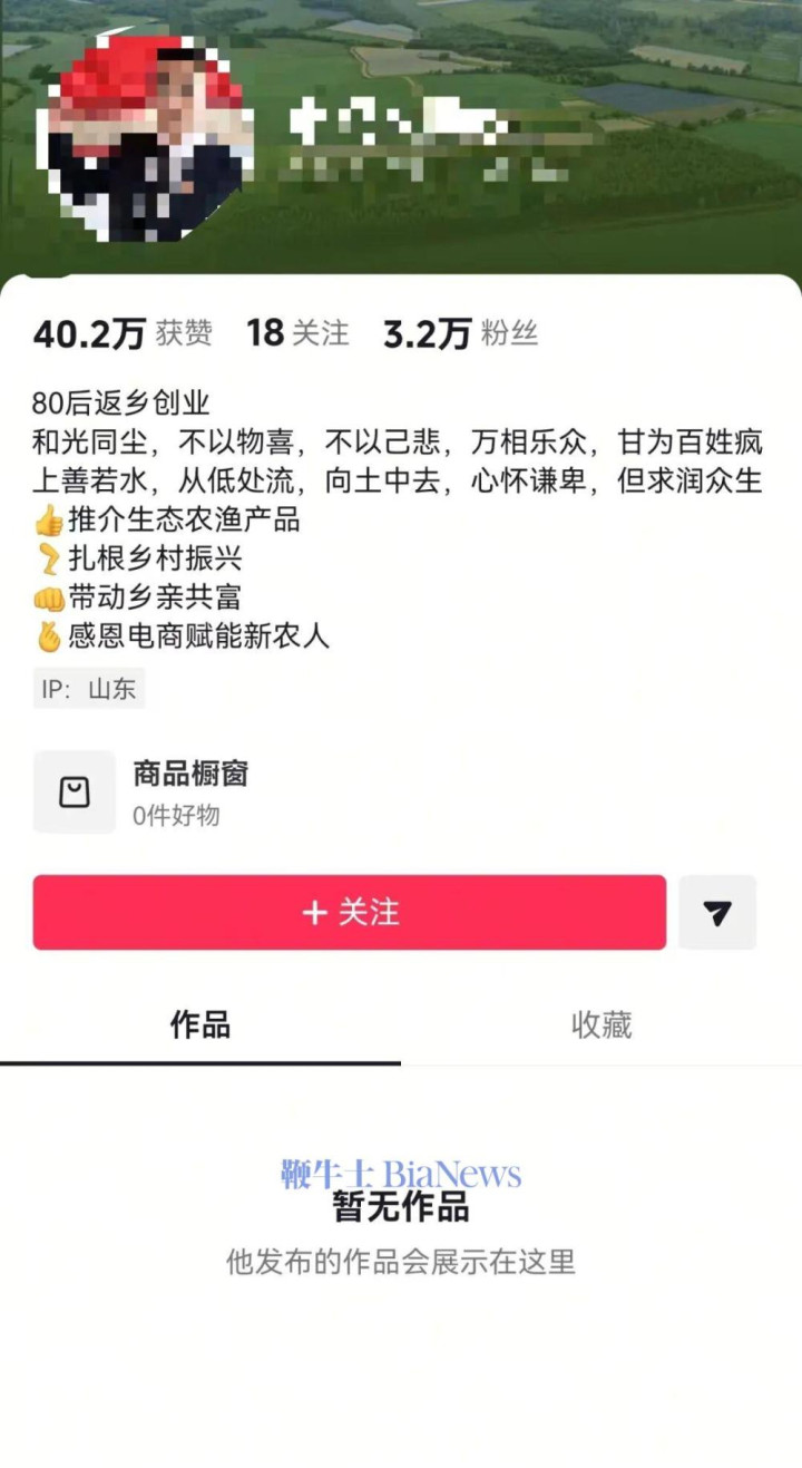 目前,冯玉宽账号已清空全部视频及商品橱窗,此前其因发布助农售卖谷物小米的相关内容已全部下架。